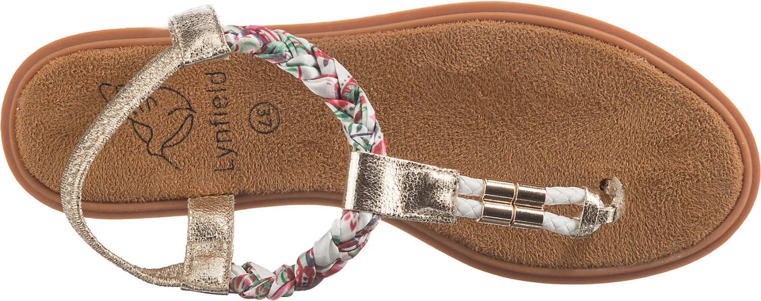 Vervollständigen unterschiedlichste Outfits: Diese modisch aktuellen T-Steg-Sandalen von Lynfield. Die textile Oberfläche ergänzt die Aufmachung dieses Schuhs. Durch das elastische Band ist eine individuelle Anpassung möglich.