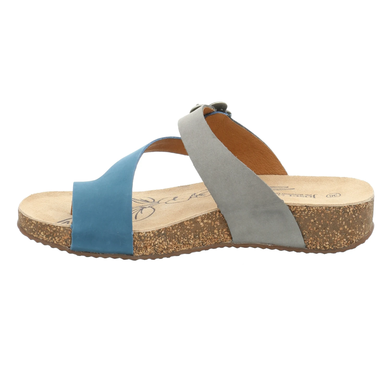 Die bequeme Damen-Sandale der Marke Josef Seibel aus Leder wird von nun an Ihr ständiger Begleiter sein. Die Decksohle aus Rindsvelour ist hochwertig verarbeitet und bietet optimalen Komfort. Der Schuh verfügt über eine Weite G, ideal für den ganz normalen Fuß. Die Plateausohle hat eine Absatzhöhe von 2,8 cm. Die stabile Laufsohle ist aus Gummi/Kork, diese Sohle ist robust, stabil und strapazierfähig. Die offene Schuhspitze macht den Schuh elegant am Fuß. Der Schuh ist perfekt geeignet fürs ganztägige Tragen, da Tragegefühl, Komfort und Verarbeitung so ausgerichtet sind, dass Sie den Schuh den ganzen Tag über ohne Probleme tragen können.