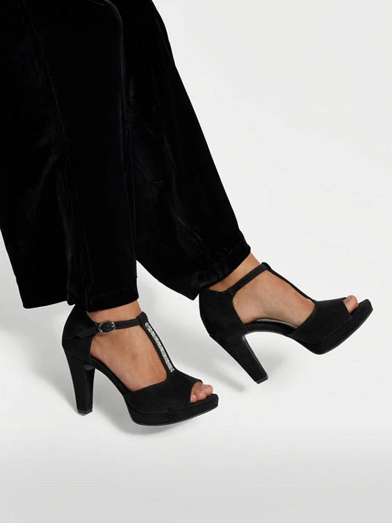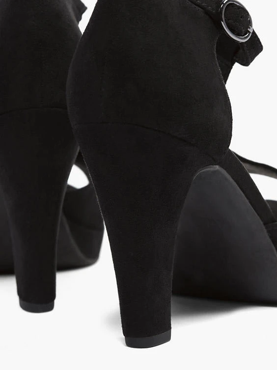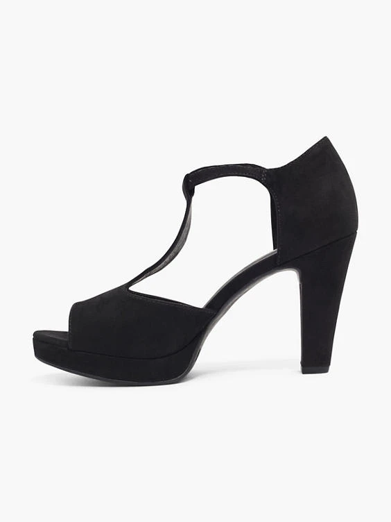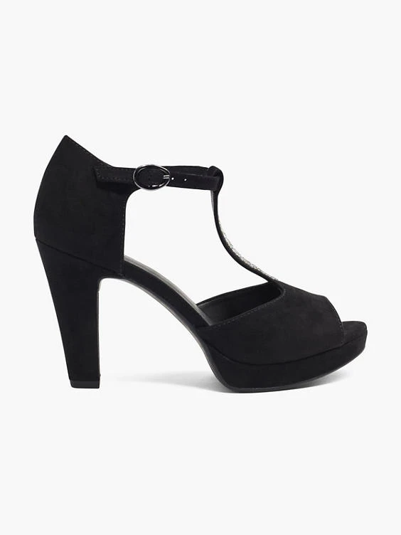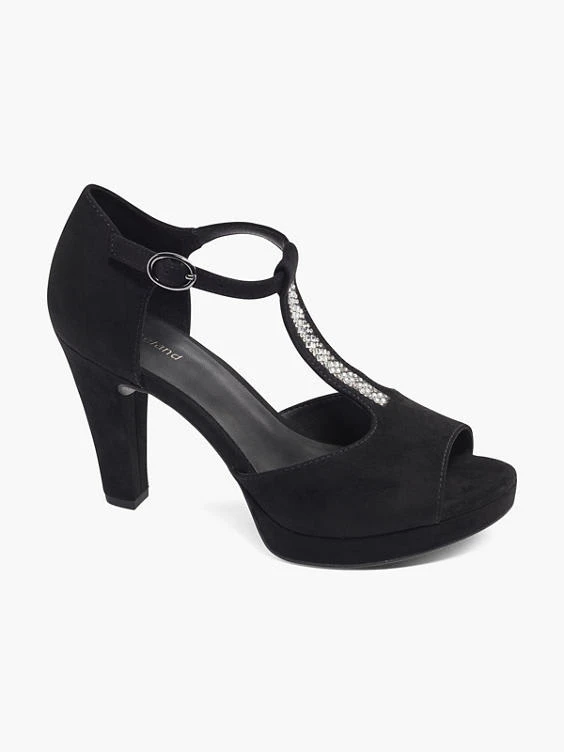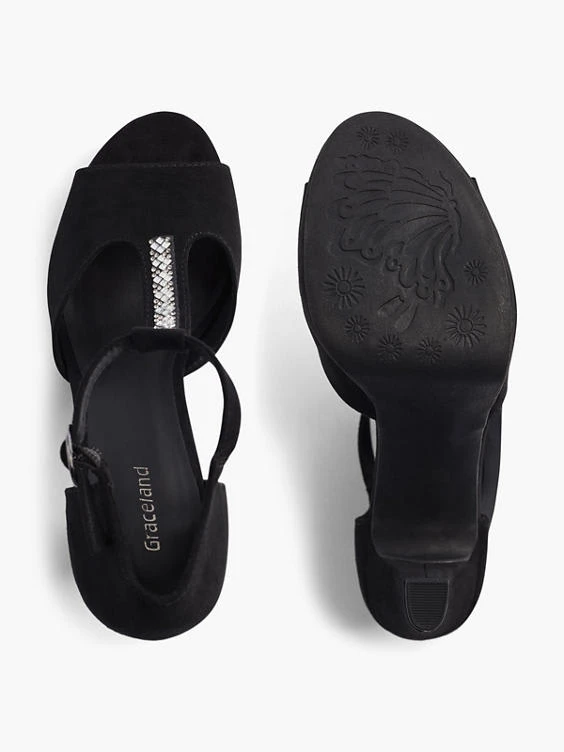 T-Spangenpumps Marke: Graceland Farbe: Schwarz Obermaterial: Synthetik, Textil Innenmaterial: Synthetik Außensohle: Synthetik Absatzhöhe: 9,7 cm