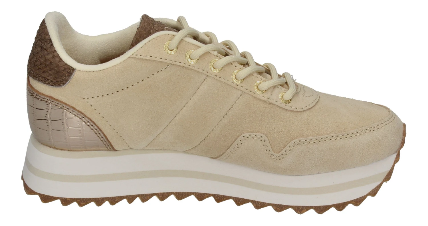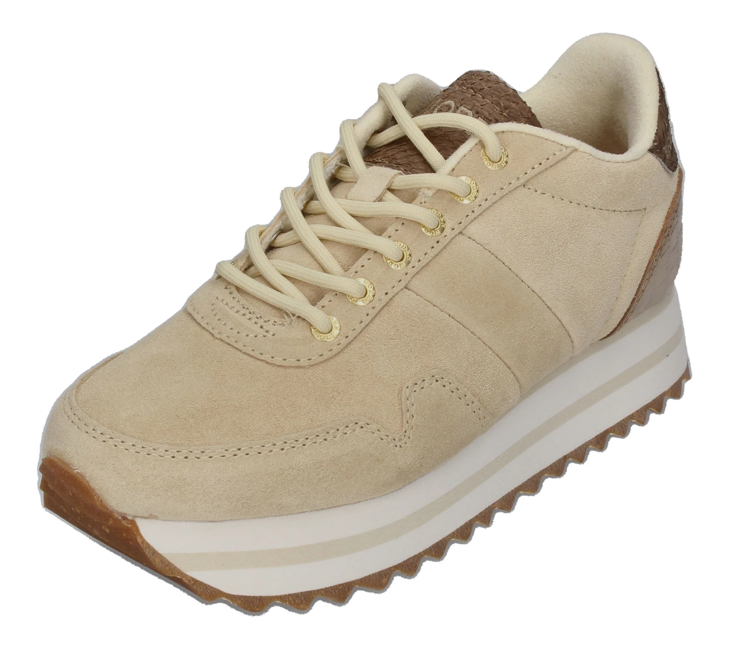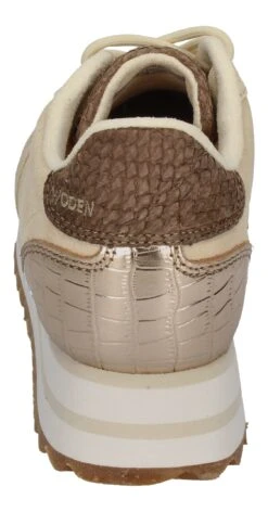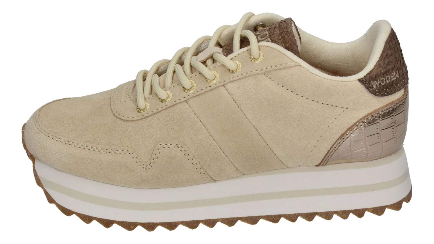 Reduziere Deinen ökologischen Fußabdruck auf coole Weise! Das umweltfreundlichere Herstellung und coole Mode sich nicht ausschließen müssen zeigt uns Woden mit diesen Sneakers. Die skandinavische Marke WODEN legt ihren Focus auf skandinavisches Design, natürliche Qualitätsmaterialien und ein gutes Preis-Leistungsverhältnis. Die Sneakers Nora III Croco Heel Plateau in beige mit moderat hohem Plateau kommen in einem Mix aus edlem Fischleder, Nubukleder und Glattleder im Metallic Look daher. Die herausnehmbare Einlegsohle aus natürlich stoßdämpfendem, atmungsaktivem Kork sorgt für ein super Klima im Schuh. Das skandinavische Design macht diese coolen Sneaker zu zeitlosen aber dennoch edlen, modernen Must-Haves.